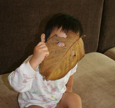 도현 나뭇잎보면 가면 만들려고 구멍 뚫고나서 "잡아라" 하며 쫓아옵니다. ㅋㅋ