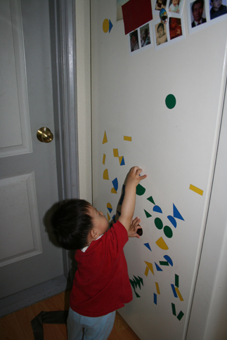 첫번째 사진 자석도형 완성되어서 냉장고에 붙혀진 모습
