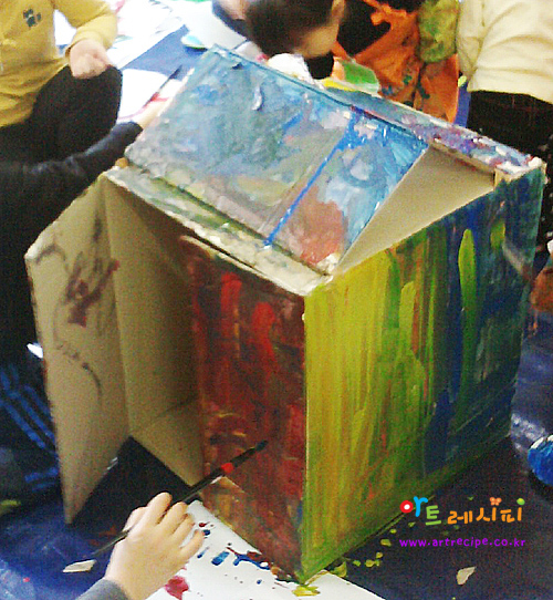 (박스에 칠하는 물감은 묽지 않게 진한 색으로 칠해주시면 잘 칠해진답니다.)