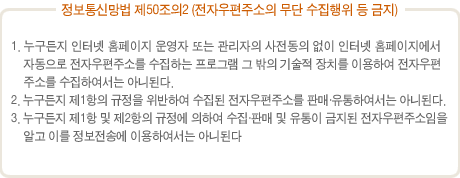 이를 위반시 정보통신망법 의해 형사 처벌됨을 유념하시기 바랍니다.